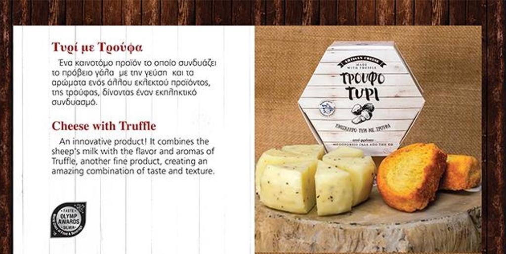 Το Τρουφοτύρι μας ένα αιγοπρόβειο ημίσκληρο τυρί με ελληνική και μόνο Τρούφα ! Ένα μοναδικό προιόν με γάλα από το νησί της Κω ! Μοναδικό !